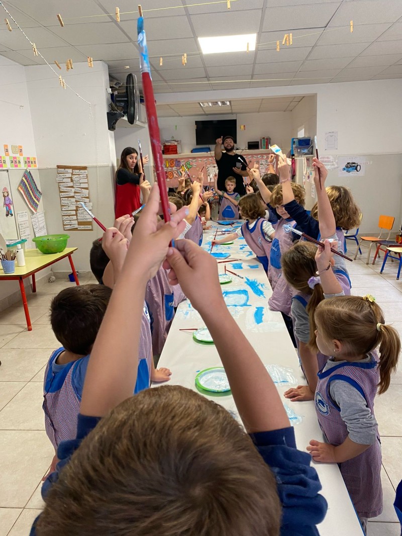 EN NIVEL INICIAL JUNTO AL PROFE DE MÚSICA MARCOS DISFRUTAMOS ESCUCHANDO EL HIMNO NACIONAL Y PINTANDO CON COLORES PATRIOS AL RÍTMO DE SU MELODÍA